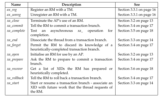 说mycat的事务支持之前,先说说XA协议,即分布式事务。指的是TM(事务管理器)和RM(资源管理器)之间的接口,定义了一些以ax_,xa_开头的接口函数。如下: