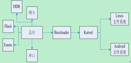 1.当板子一上电,因为芯片有boot的功能,自动会从flash搬启动代码并执行处理。这里的代码其实就是bootloader的第一个阶段。其实bootloader就是具有boot和loarder的功能。Boot就是搬代码,引导,loarder就是加载各个需要的驱动。