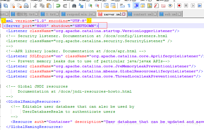 java是面向对象的语言,那么如果假如我有实力来写服务器我一定会将这个服务器封装为一个对象。相比换做其他人也会这样做。没错,Tomcat一定会这样(虽然我没看源码但是我干肯定)。打开conf/server.xml文件。Tomcat入口一定会加载这个文件。文件最外层的server标签就是即将被加载成Server对象的