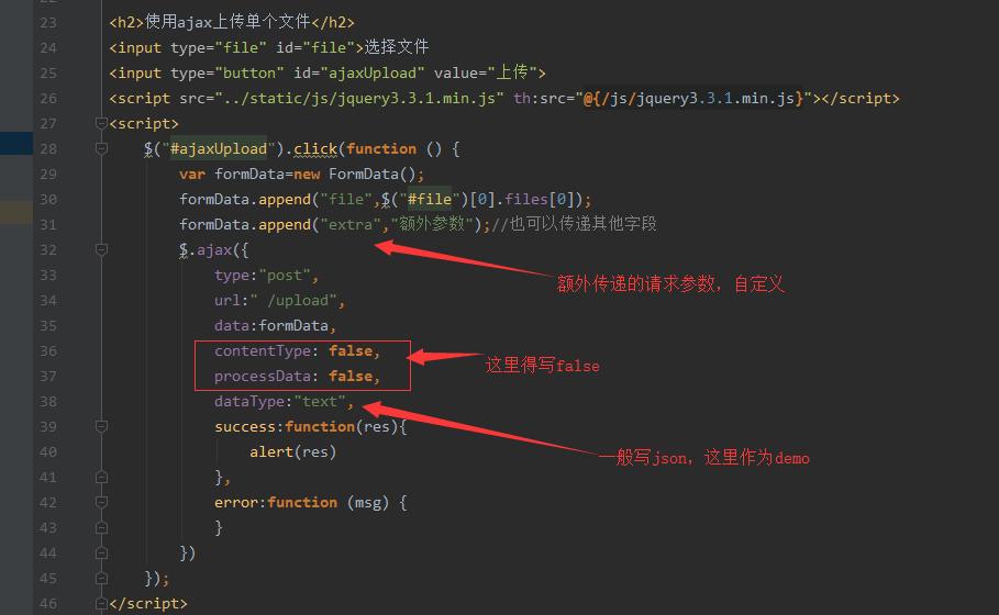 页面代码如下图,控制器接口和第一种传统表单上传的接口共用。