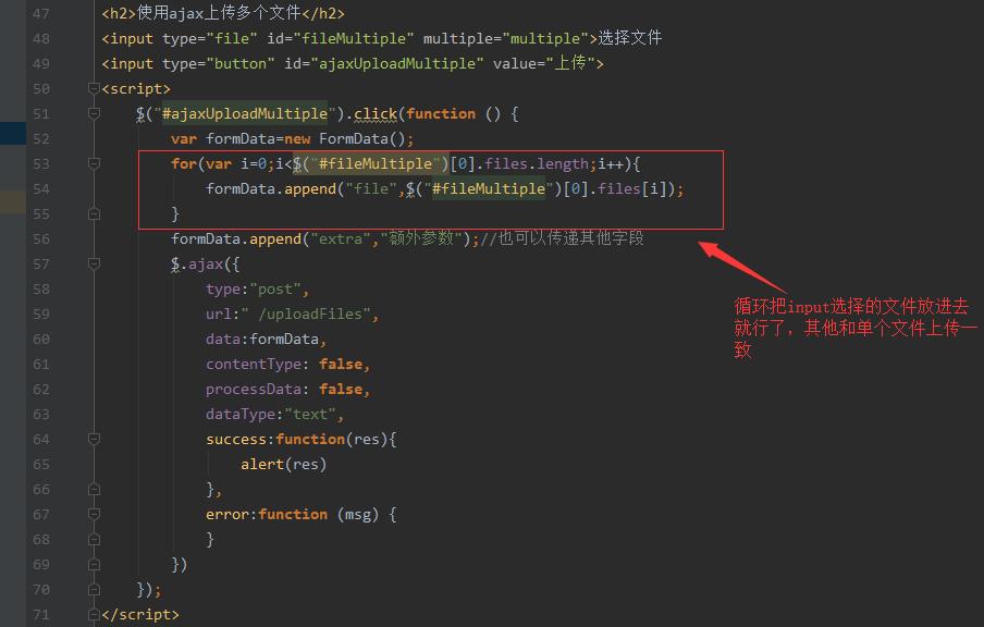 页面代码如下图,控制器和传统表单多文件上传的接口共用。