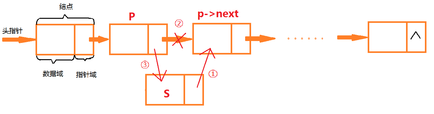 向位置i插入一个节点,只要找到目标位置前一个节点(i-1),把i-1节点的next指向新节点,再把新节点的next节点指向i+1节点即可